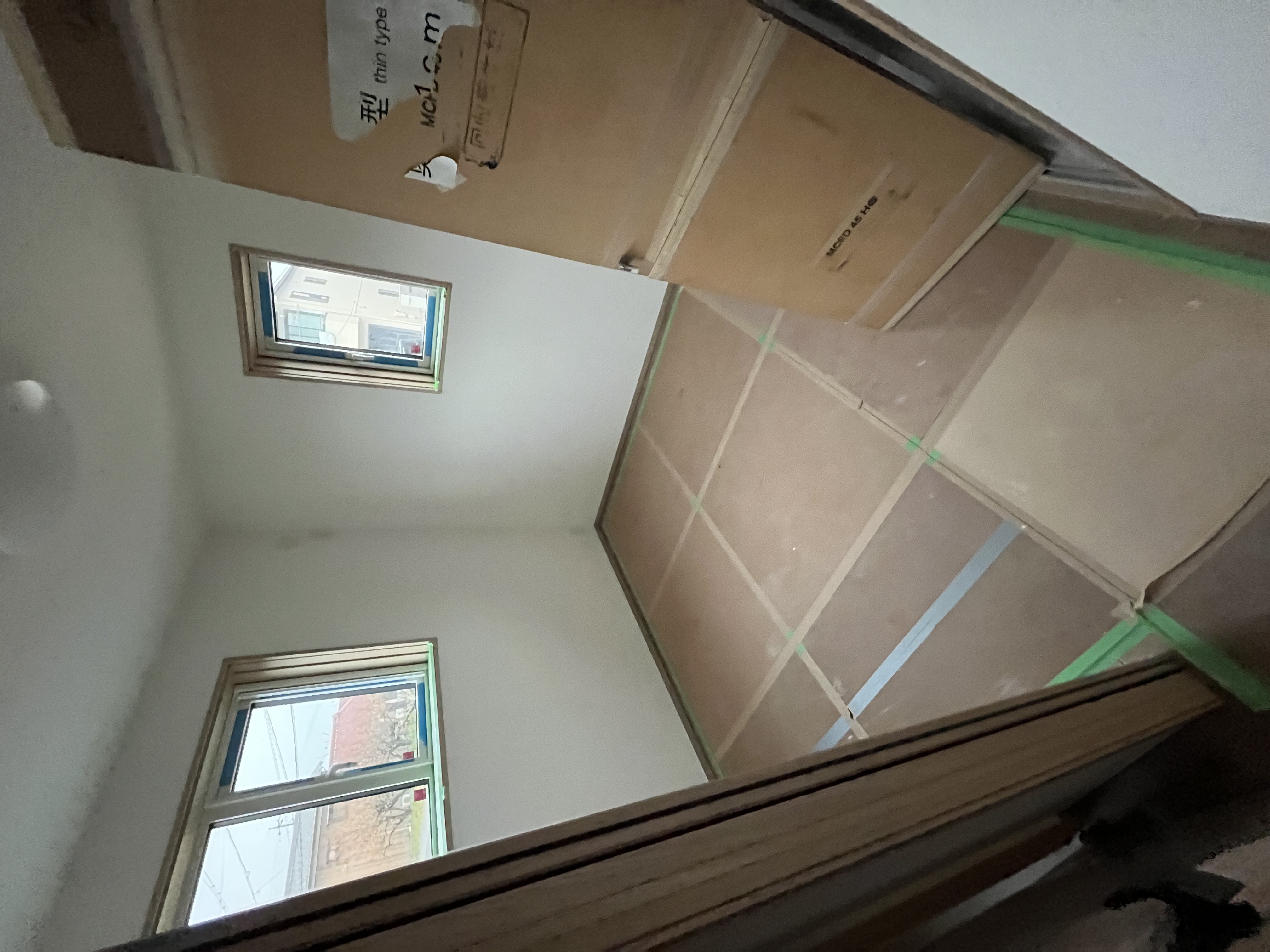 建築工事後の粉塵や養生跡が残っている状態です。